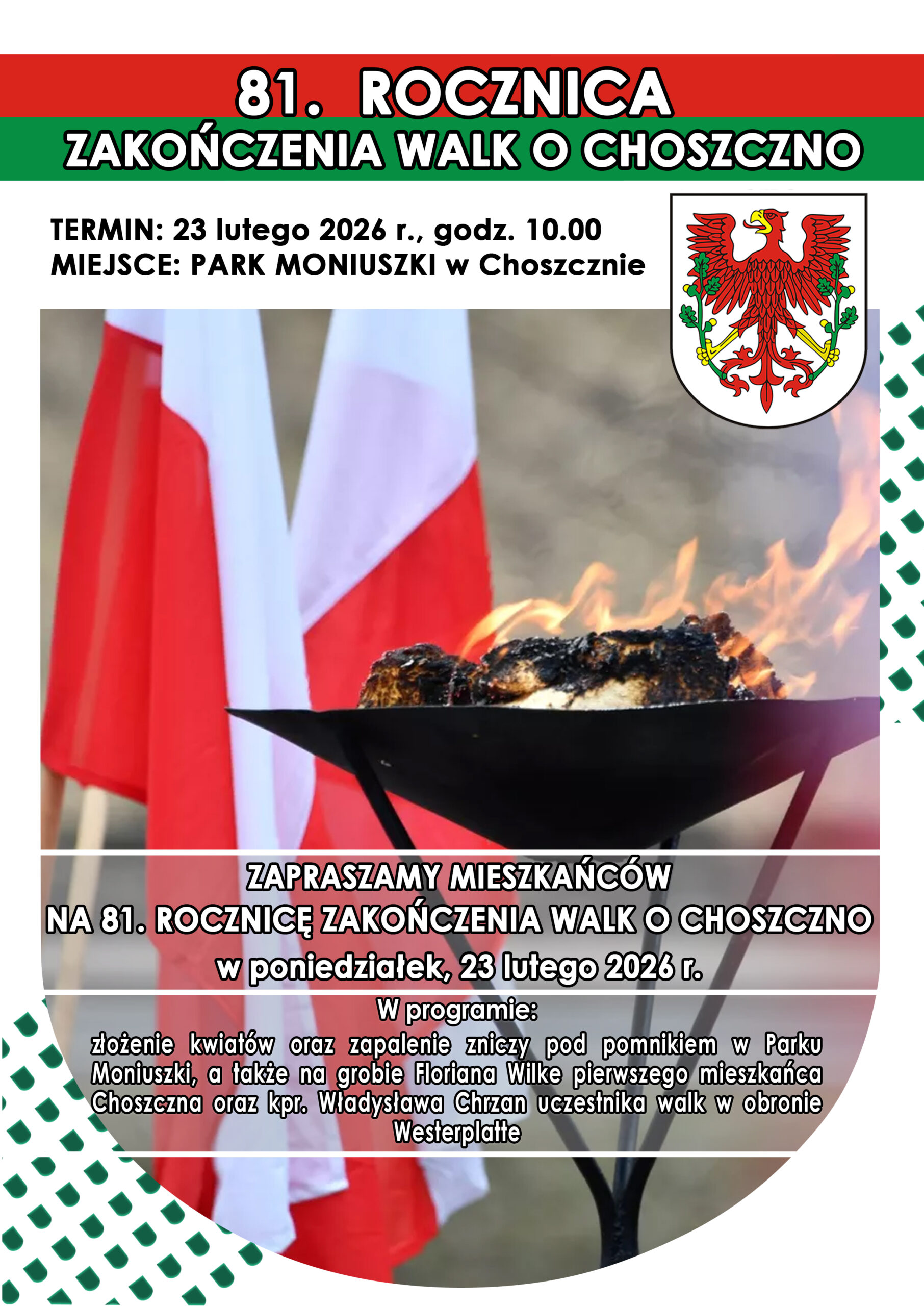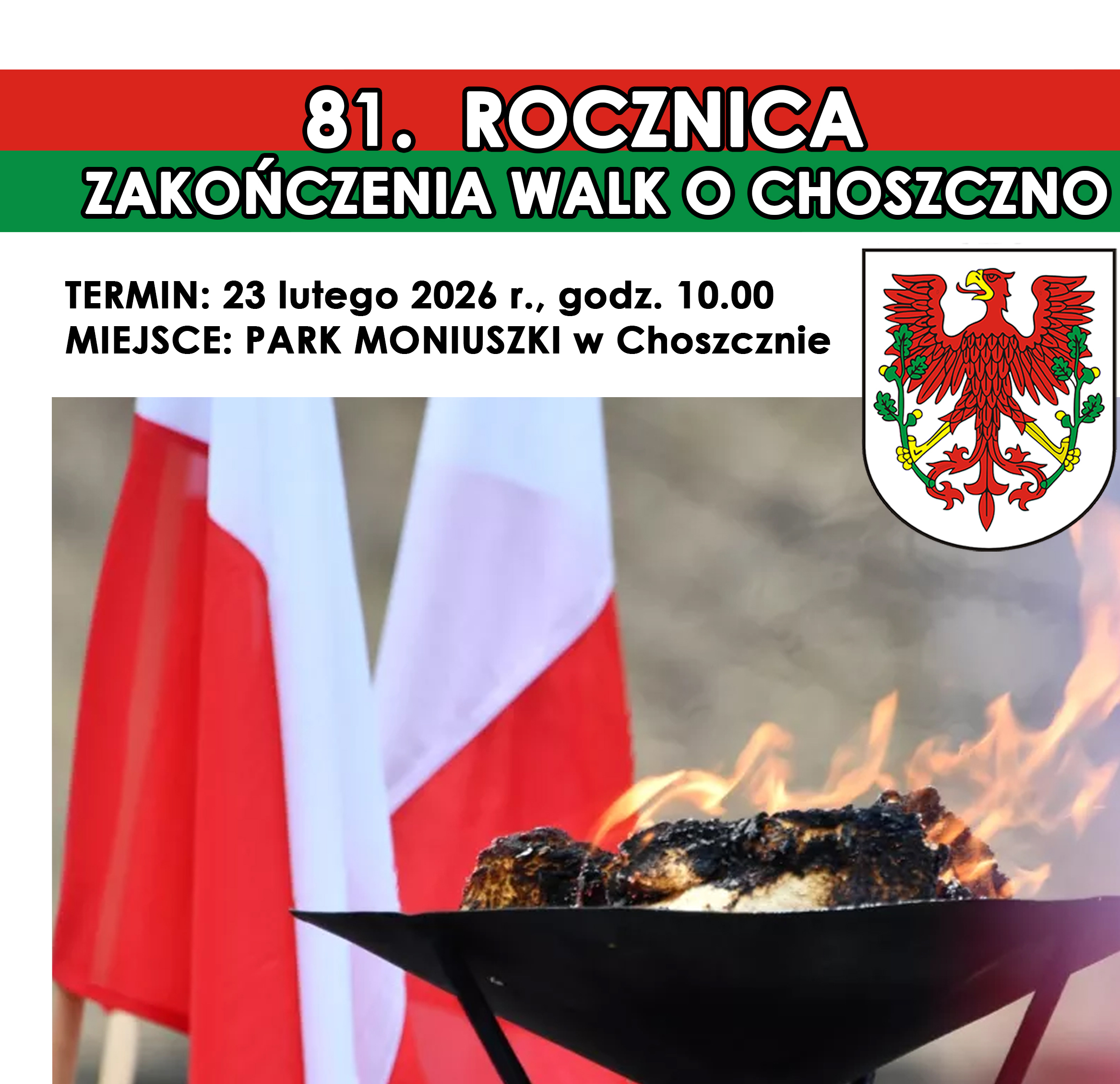 Serdecznie zapraszamy mieszkańców Choszczna oraz wszystkich zainteresowanych do udziału w upamiętnieniu 81. rocznicy zakończenia walk o Choszczno.