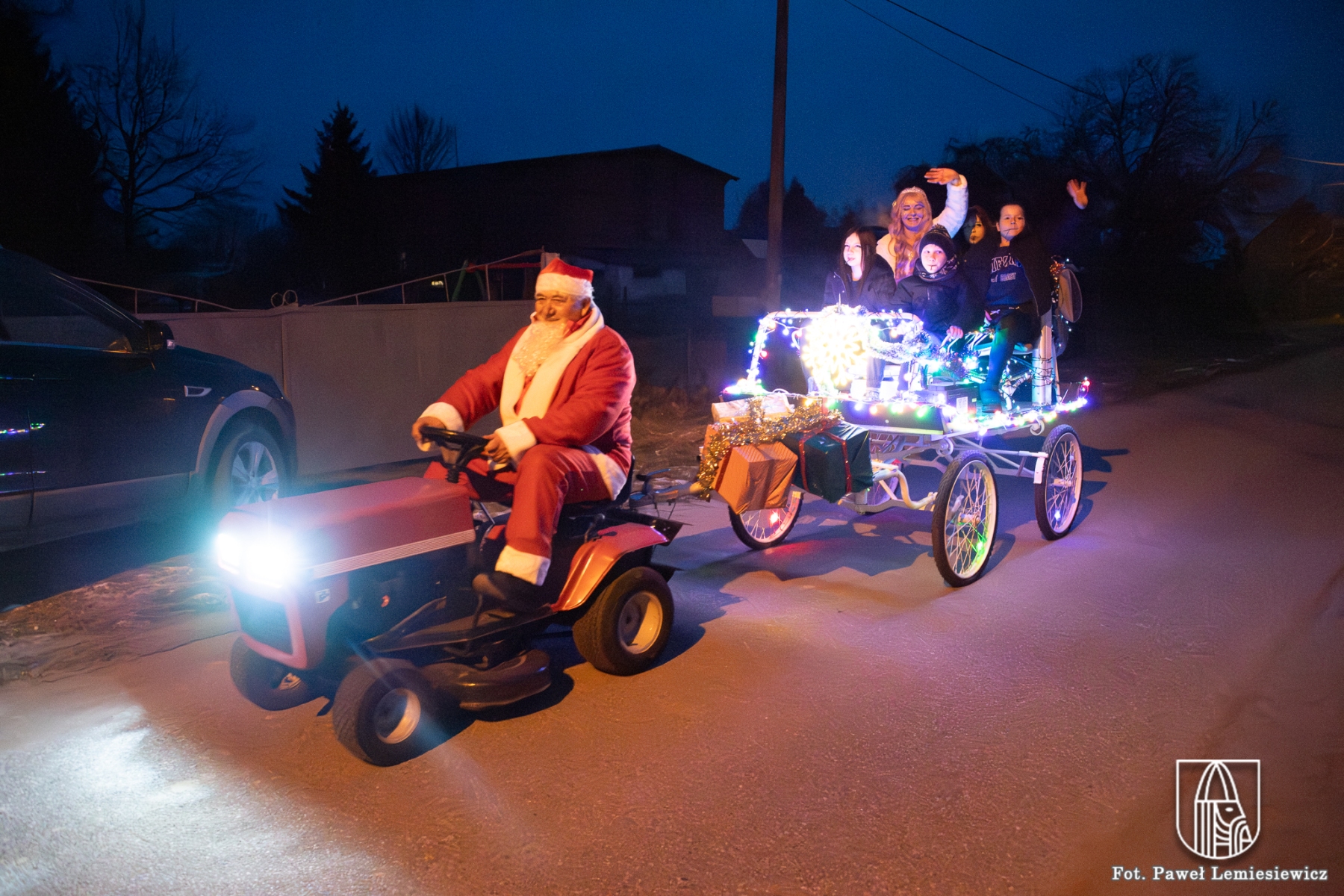 Szczególną niespodzianką dla najmłodszych był Mikołaj, który pojawił się w niecodzienny sposób – na swoim pojeździe. Jego wizyta wywołała prawdziwy entuzjazm, a wręczone upominki sprawiły dzieciom ogromną radość i dodały temu wieczorowi wyjątkowego, magicznego klimatu.