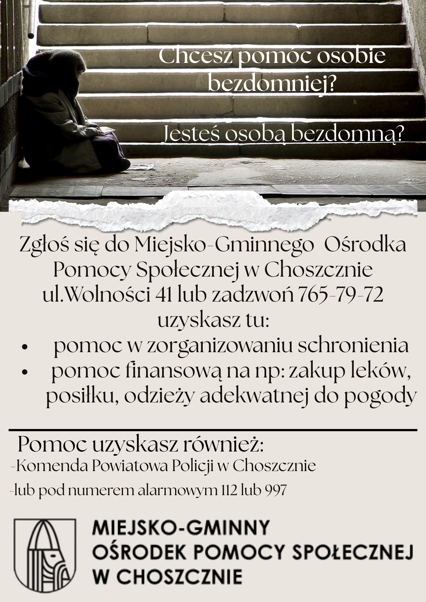 Chcesz pomóc osobie bezdomnej? Jesteś osobą bezdomną? Opublikowano 26 listopada, 2025| Nawigacja wpisu Poprzedni Previous post: Szkoła Podstawowa nr 1 w Choszcznie wyróżniona w ogólnopolskim konkursie „Do hymnu z Ministerstwem Sprawiedliwości”Następny Next post: Wyjątkowy dzień w Przedszkolu Nr 1 z Oddziałami Integracyjnymi w Choszcznie!