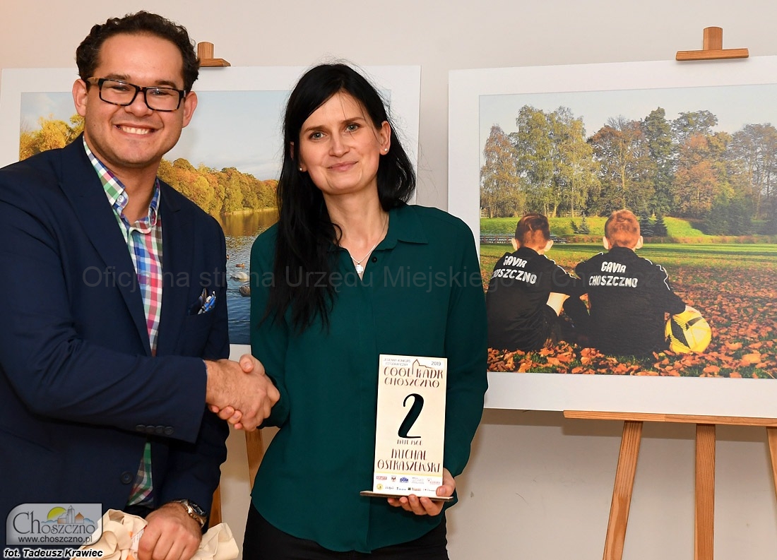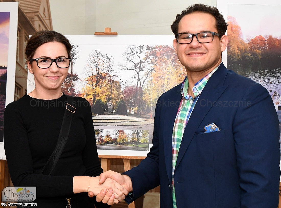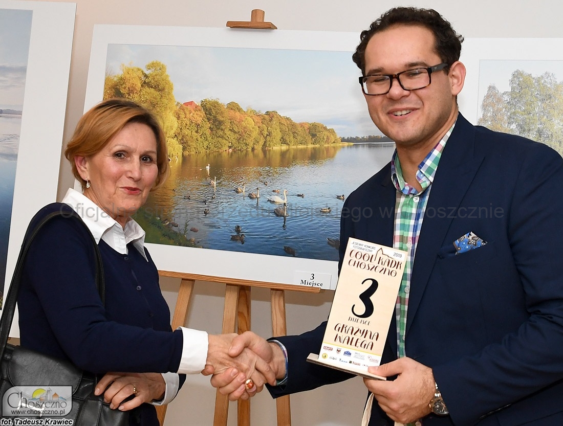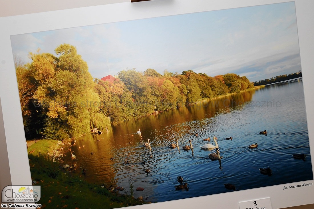 – Główną ideą tego przedsięwzięcia jest pokazywanie piękna naszej gminy. Zależy nam też na tym, aby poszukiwać ludzi, którzy widzą nasze miasto, nie tylko przez pryzmat najważniejszych zabytków ? tłumaczył wczoraj MAKSYM BACZYŃSKI. Nagrodę za pierwsze miejsce wręczył TOMASZOWI FROSTOWI, który przedstawił jesienną panoramę Choszczna z lotu ptaka. Tu zaznaczył, że już niebawem nagrodzą fotografię będziemy mogli oglądać na banerze, stojącym przy drodze wjazdowej od strony Recza. Mottem przewodnim opisywanego konkursu była ?Jesień  w Choszcznie?, więc również druga (MICHAŁ OSTRASZEWSKI) i trzecia (GRAŻYNA WAŁĘGA) nagroda trafiły w ręce osób, które nie przegapiły uroków mijającej właśnie pory roku.