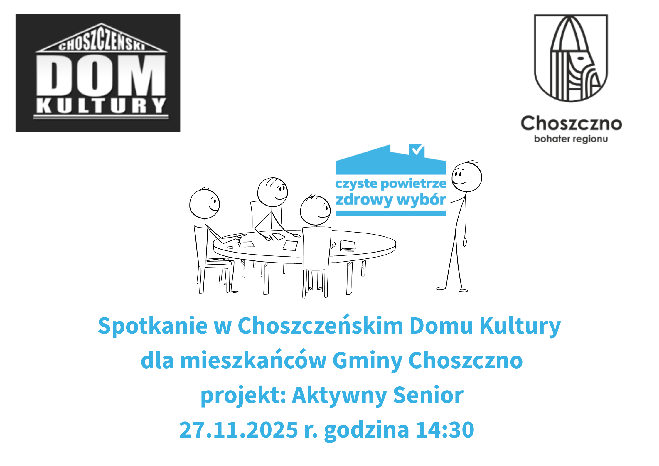 Drodzy Mieszkańcy Choszczna, informuję, że w dniu dzisiejszym w ramach projekty „Aktywny Senior” opowiem o programie „Czyste Powietrze”