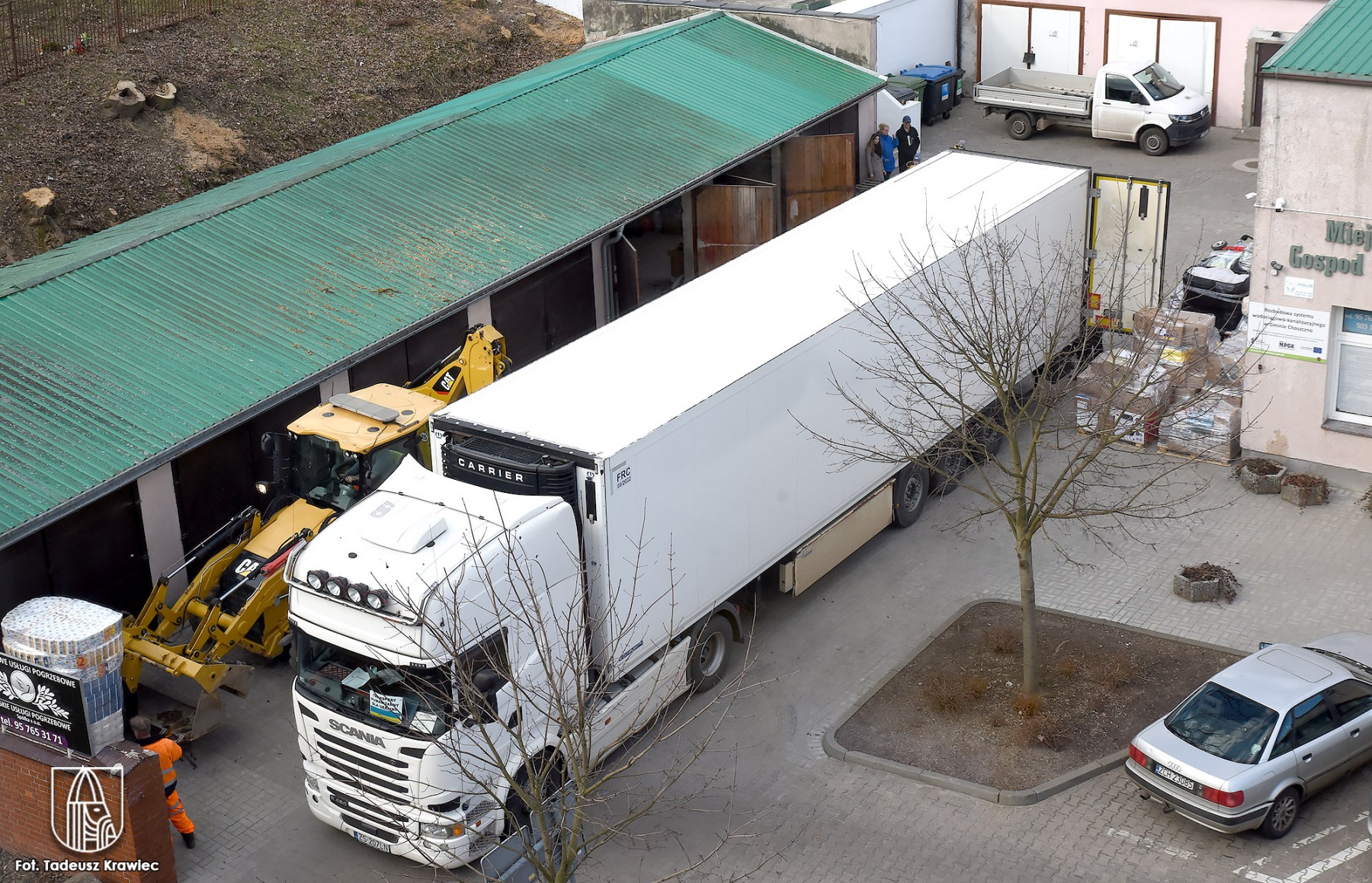 Tę górę darów zbieraliśmy od piątku przy wsparciu: Miejskiego Przedsiębiorstwa Gospodarski Komunalnej w Choszcznie, Rolniczej Spółdzielni Produkcyjnej w Rzecku, Marka Kropidłowskiego, Malms – Mariusze Letkomillera, Marka Cześnina – parafia Włoczkowo, mieszkańców Choszczna, którzy wpłacili na konto Stowarzyszenia “Kobieta 2000” oraz dołożyli się do zbiórki darów, Urzędu Miejskiego w Choszcznie oraz firmy transportowej BE Trans Wojciech Baranek. (tk)