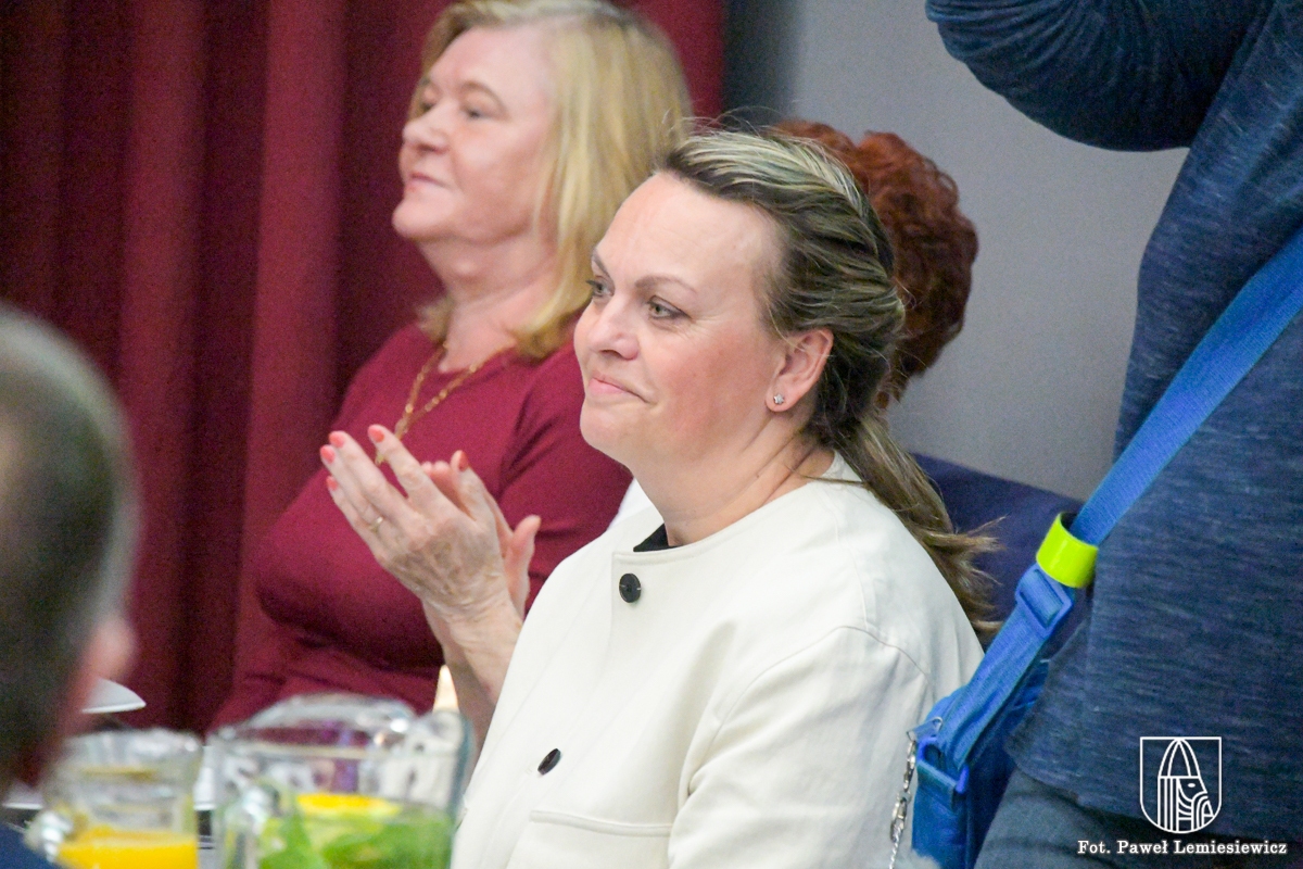 Po oficjalnym otwarciu głos zabrała Barbara Naskręt – Prezes Oddziału ZNP w Choszcznie, która przedstawiła znaczenie działalności ZNP w kontekście wieloletniej tradycji oraz podkreśliła rolę wszystkich grup zawodowych tworzących polską oświatę. Następnie przemówienia wygłosili: Burmistrz Choszczna Artur Raczyński oraz Starosta Choszczeńska Wioletta Kaszak, odnosząc się do wkładu pracowników szkół — zarówno pedagogicznych, jak i administracyjno-obsługowych — w rozwój lokalnych instytucji edukacyjnych. W wydarzeniu uczestniczył również Zastępca Burmistrza Andrzej Kowalik. Obecni byli także dyrektorzy jednostek oświatowych: Elżbieta Andruszewska, Mariusz Bazan, Magdalena Bajbuła, Beata Chmielewska, Elżbieta Kłos, Edyta Tyburczy-Kujawa, Agnieszka Pluta oraz Alina Szymańska.